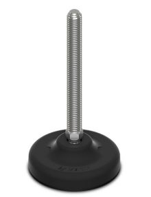 Műanyag talpas gépláb csúszásgátlóval, rozsdamentes menetes szár, csuklós (30°)