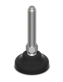 Műanyag talpas gépláb csúszásgátlóval, rozsdamentes menetes szár, csuklós (30°)