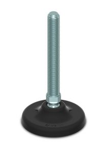Műanyag talpas gépláb, horganyzott acél finommenetes szár, csuklós (30°)